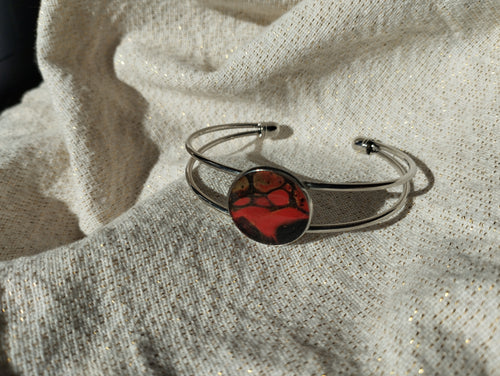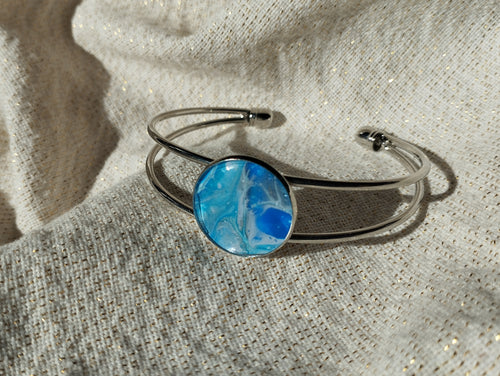 Je transpose également cet univers dans mes bijoux contemporains, fragments d’art à porter, prolongeant le dialogue entre la toile et l’objet.